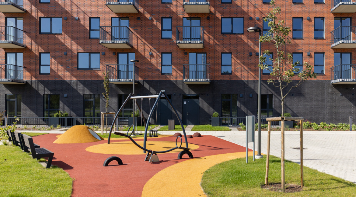The buildings of the first stage will be of energy class A and the new living environment will have unique landscaping. There will be an outdoor gym, multiple recreation areas for different ages, a shared greenhouse, basketball and football fields located on the roof of a multi-storey parking house. The size of the apartments in the 9-storey building ranges from 35 to 86 square meters. All apartments will have balcony or terrace and efficient floor plans prioritising functionality – a dedicated workspace area in living room in all apartments and a laundry room in large apartments.