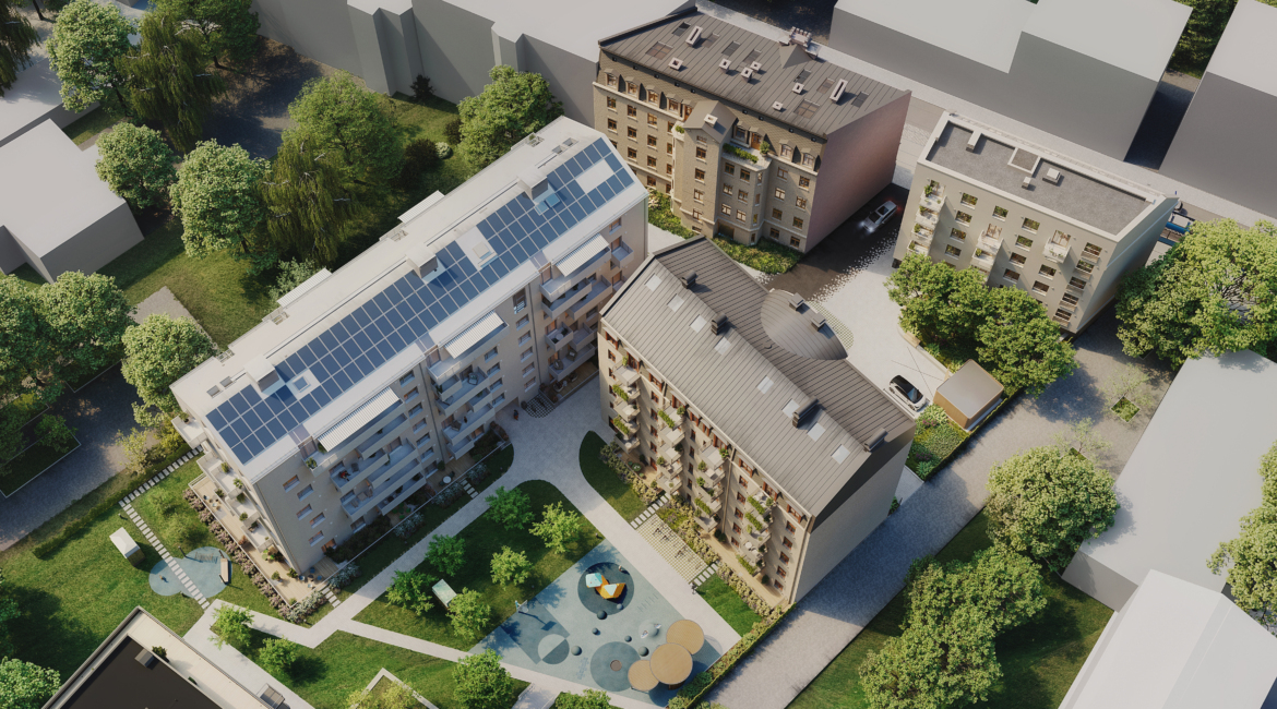 Merko will create a landscaped inner courtyard around the buildings, featuring green areas, children’s playgrounds, and leisure spaces. The shared courtyard will connect the Pētersala residential environment with Merko’s earlier Viesturdārzs project, giving residents of the new quarter direct access to one of Riga’s most beloved green spaces, Viesturdārzs Park.