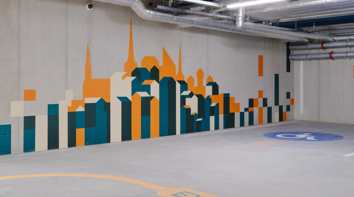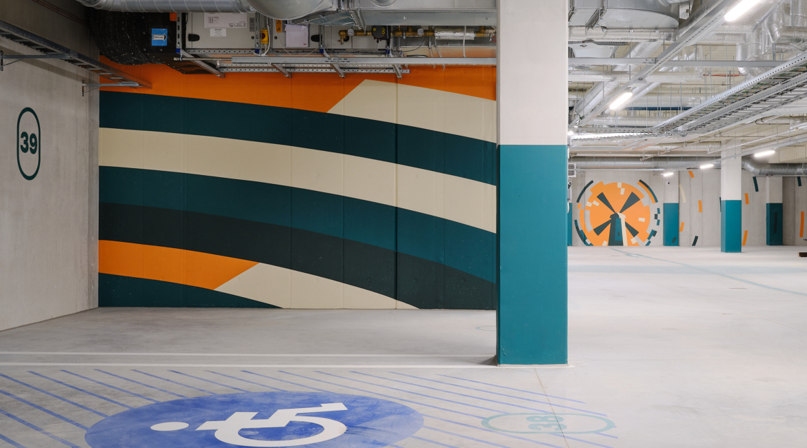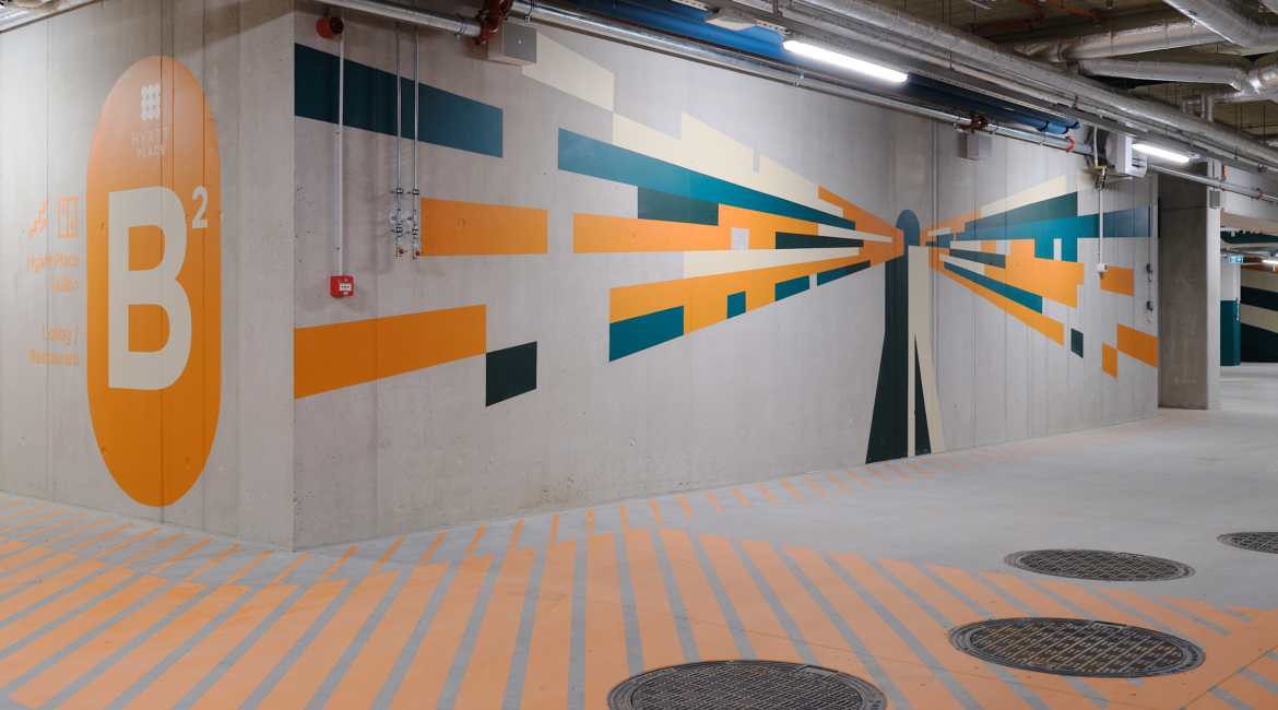 Hoone parkimiskorruse seinagraafika pälvis Kuldmuna 2026 konkursil keskkonnadisaini kategoorias pronksmuna.