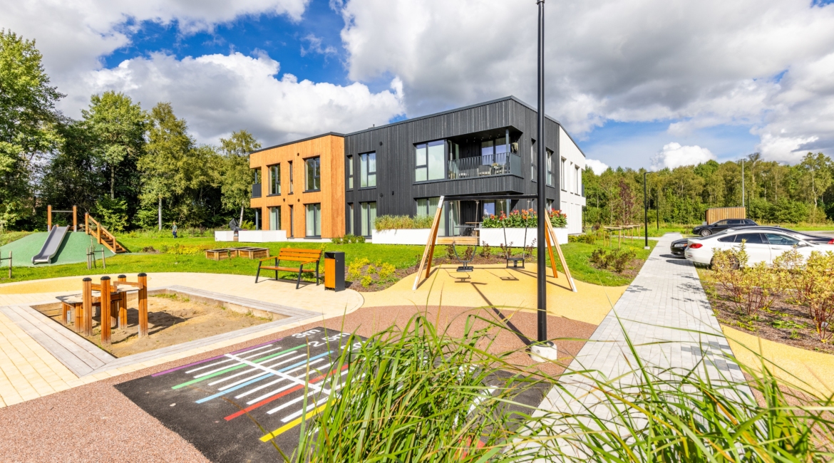 Õielehe esimese etapina valminud A-energiaklassiga kahekorruselistes hoonetes on 22 korterit ning 2–5-toaliste kodude suurused jäävad vahemikku 50–102 ruutmeetrit. Kõigil korteritel on rõdu või terrass ning jahutussüsteemi lisamise valmidus. Autode parkimiskohtadel on elektriauto laadimispunkti paigaldamise valmidus ja hoonete katustel päikesepaneelid.